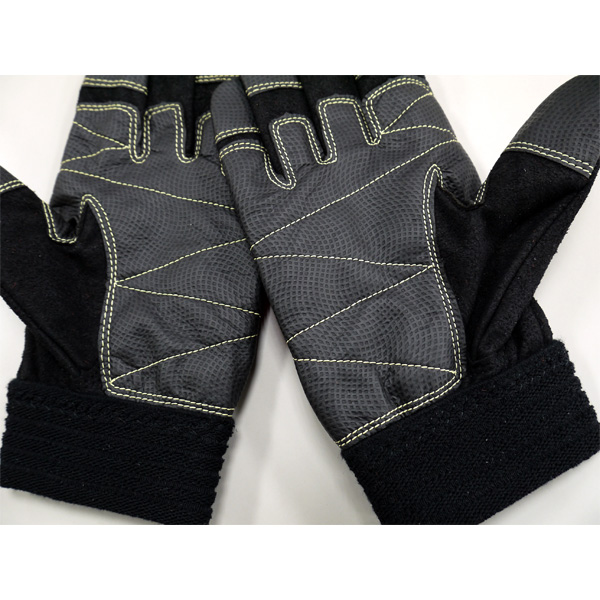 掌と指先補強にグリップ力と磨耗強度に優れた銀付きエンボス人工皮革を
